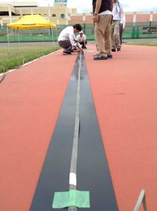 そして電子計時のテープスイッチ!これを踏むと計時装置にピピっとタイムが表示される仕組みです。